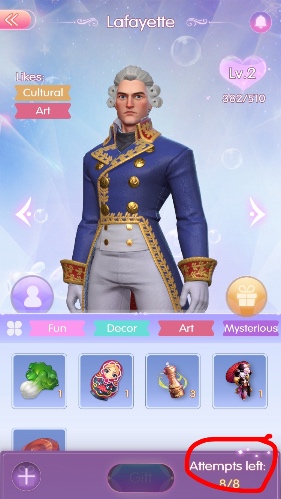 Time Princess is a super fun game but the crafting system can be a grind. Aside from all the very cool grownup jewelry I found a great gift for her. Later that night you attended the costume ball where you had the chance to dance with either Fersen or Lafayette.